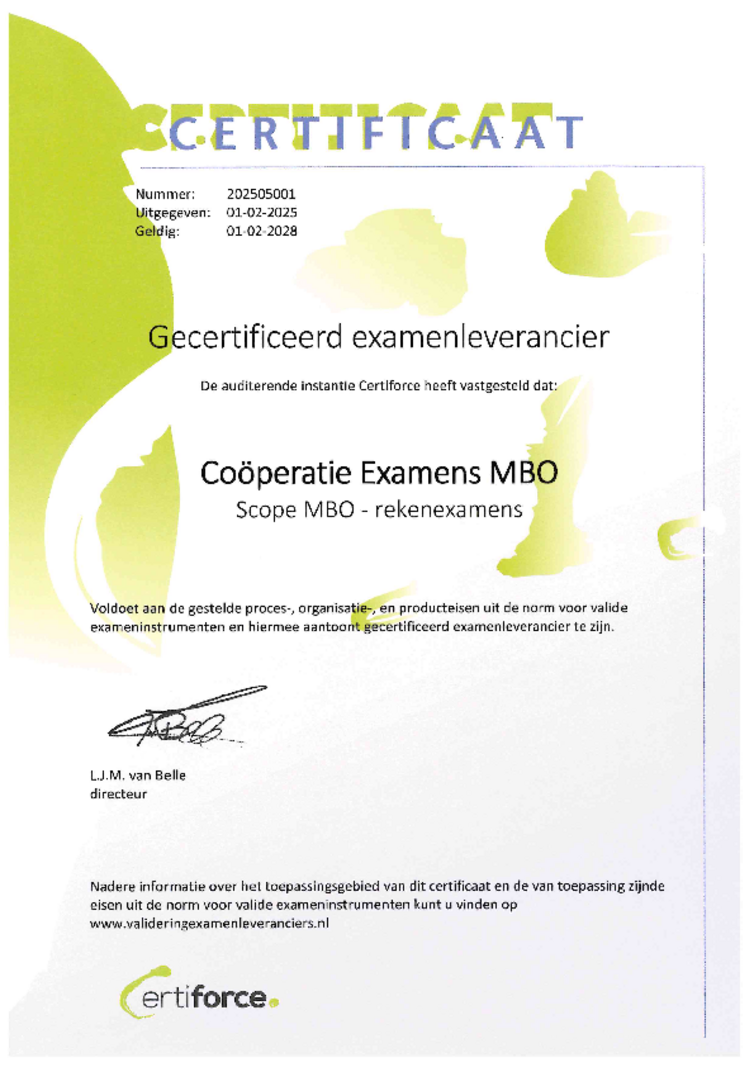 Ons team werkt dagelijks aan de examens van de Coöperatie Examens MBO. Wij staan in dienst van de scholen en werken samen met de scholen aan hoogwaardige examens voor 500.000 mbo-studenten in het land. Onze Coöperatie is van, voor en door het mbo.